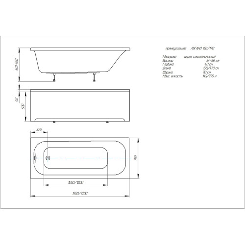 Ванна Лугано прямоугольная 15070 см LUG150-0000001