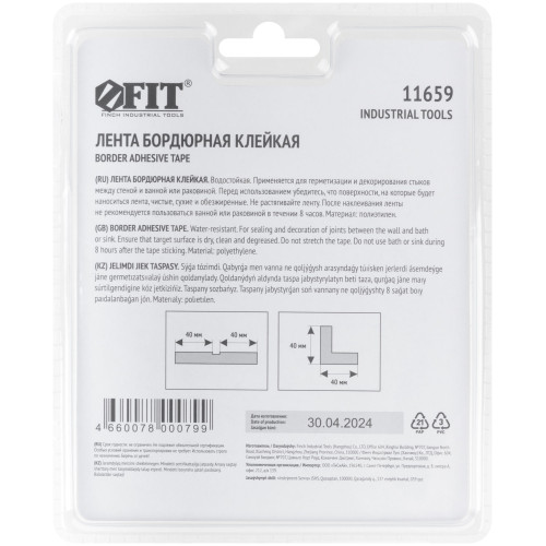 Лента бордюрная, клейкая, водостойкая, 40 мм х 40 мм х 3,35 м