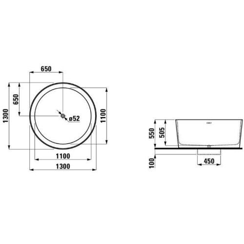Laufen VAL Ванна 130x130x50.5см, отдельностоящая, круглая, с слив-переливом, материал: композит, цвет: белый. 2.3128.2.000.000.1
