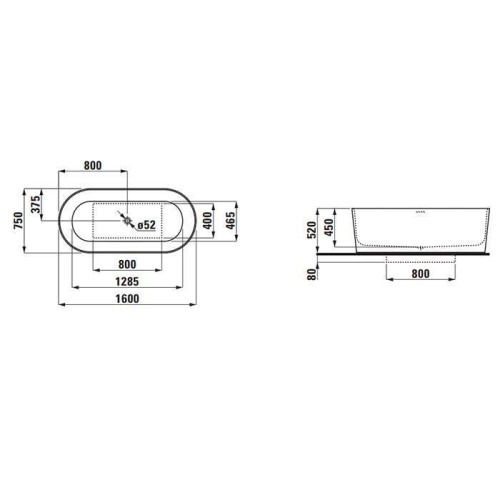 Laufen VAL Ванна 160x75x45см, отдельностоящая, с слив-переливом, материал: композит, цвет: белый. 2.3028.2.000.000.1