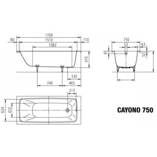 Ванна Cayono Мод.750 170х75x41 белый + anti-sleap+easy-clean 275030003001