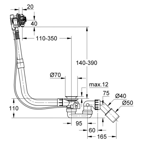 28991000 Talentofill Наливной, сливной и переливной гарнитур для анатомических ванн (встраиваемая часть) 28991000