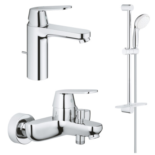 1000179 Набор для ванны Eurosmart Cosmo: Смеситель для рак (23325000), смеситель для ванны (32831000), Tempesta 100 II с полкой (27926001), хром 1000179