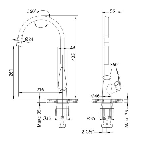 LM0415C-WhiteLINARAСмеситель для кухни, с гибким изливом, хром/белый LM0415C-White