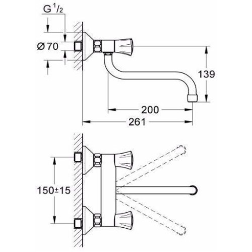 31187001 Costa L Смеситель для мойки, настенный, хром 31187001