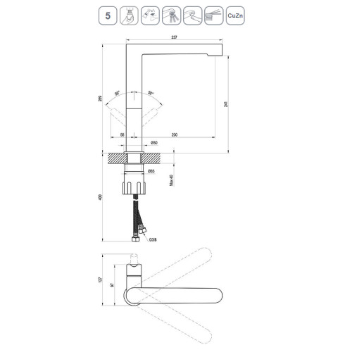 Смеситель кухонный с поворотным изливом без донного клапана PU 016.20 черный X070183