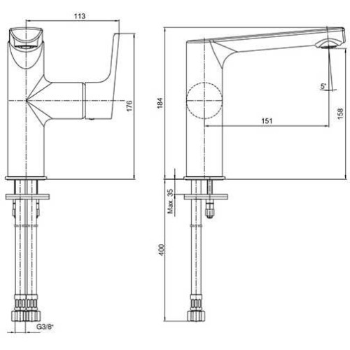 102108955EX LUNA смеситель для раковины 158 без донного клапана 102108955EX