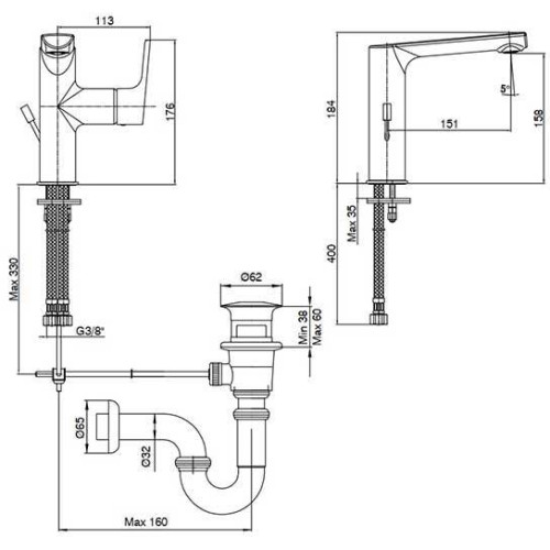 102108973EX LUNA смеситель для раковины 158 102108973EX