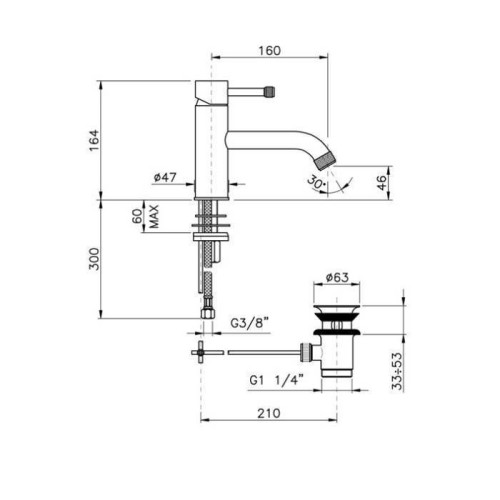 Nicolazz Olympus Смеситель для раковины на 1 отверстие, с донным клапаном, излив: 160мм, цвет: хром. 3722CR