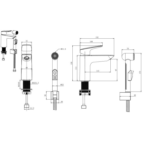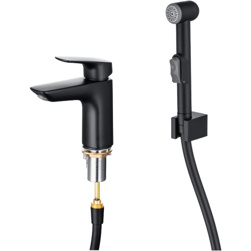 AQ1012MB ВЕГА смеситель для раковины 97 с гигиеническим ручным душем, матовый черный AQ1012MB