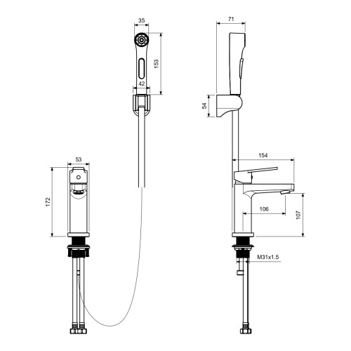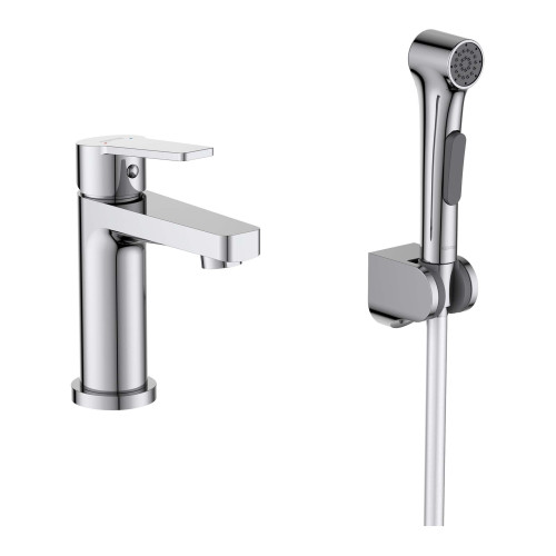 AQ1712CR ЛУГАНО смеситель для раковины 106 с гигиеническим ручным душем AQ1712CR