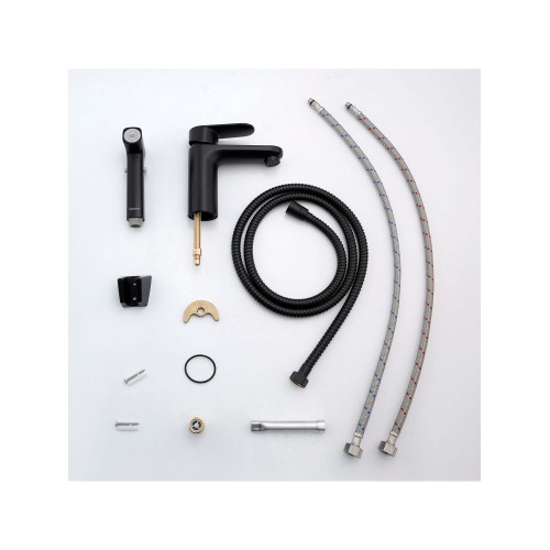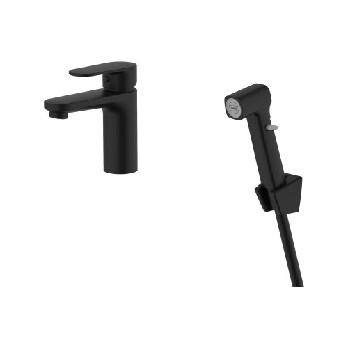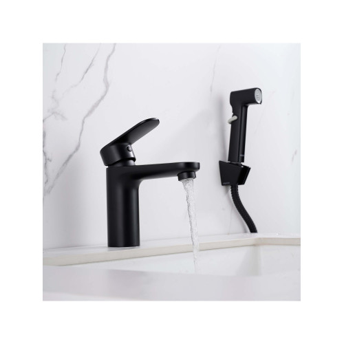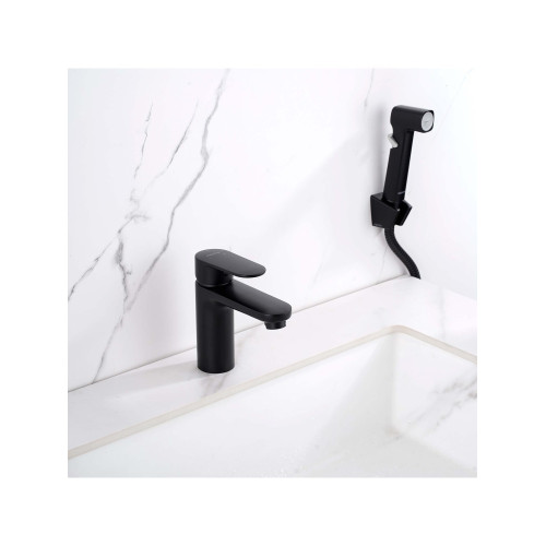 AQ1812MB НИКА смеситель для раковины 90 без донного клапана с гигиеническим ручным душем, матовый черный AQ1812MB