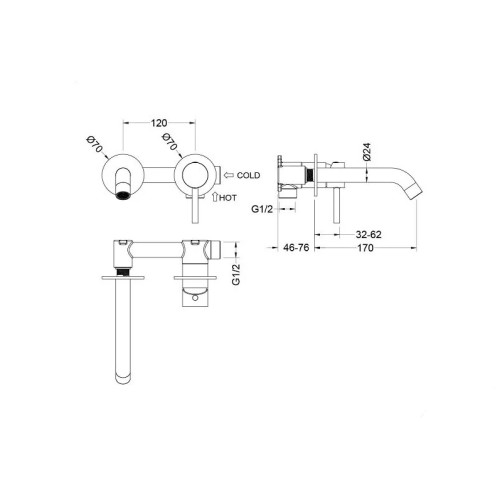 AQ1313BGM ЕВРОПА смеситель для раковины настенный 2 отв. (внешняя и скрытая часть), оружейная сталь (шлиф. черный хром) AQ1313BGM