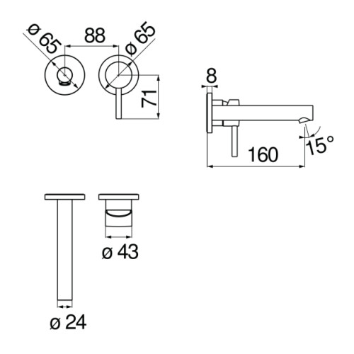 LV00499CR LIVE смеситель для раковины настенный на 2 отверстия LV00499CR