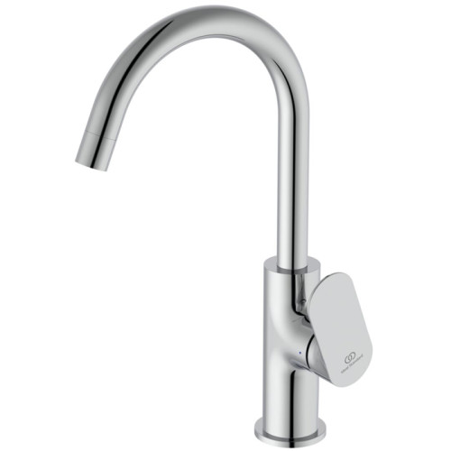 Ideal Standard Ceralife O Смеситель для раковины H21.5см., на 1 отв., с поворотным изливом, без донного клапана, цвет: хром. BE015AA