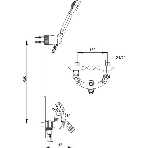 102202001EX OTTOMAN смеситель для ванны с душевым комплектом антик лак 102202001EX
