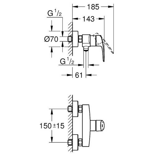 33555003 Eurosmart 2021 Смеситель для душа наружный, хром (замена 33555002) 33555003