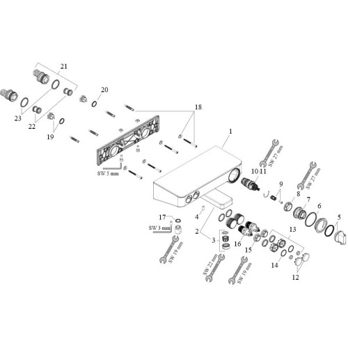 13151000 HG Ecostat Select термостатический смеситель для ванны с кнопками управления, хром 13151000