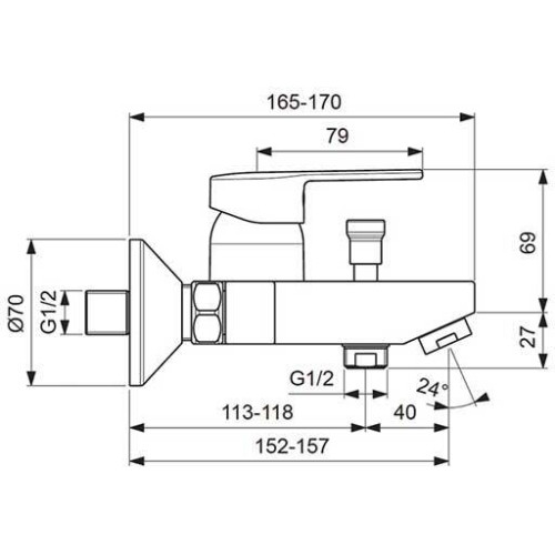 BA279AA LOGIK Смеситель для ванны душевой гарнитур в комплекте (душевая лейка Ø70 мм, металлический шланг 1500 мм, держатель для лейки) BA279AA