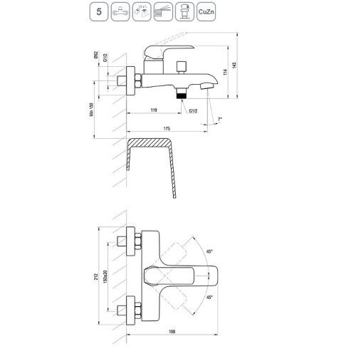 Смеситель для ванны FL 022.20/150 черный X070175