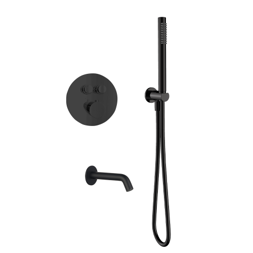 AQM8407MB Набор для комплектации ванны с изливом и термостатом с регулировкой напора, черный матовый AQM8407MB