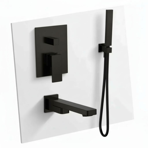 AQM8411MB Savona Набор для комплектации ванны с изливом и ручным душем, цвет черный матовый AQM8411MB