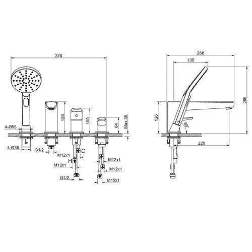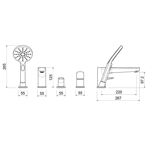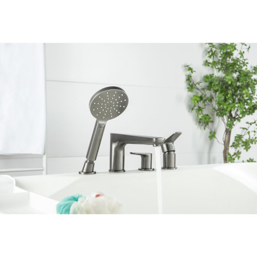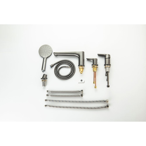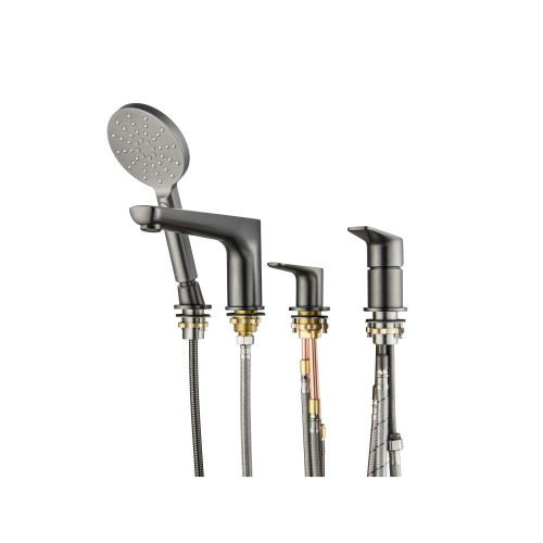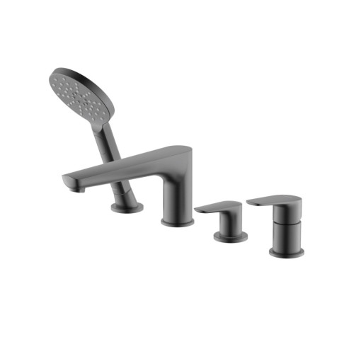 AQ1148BGM БЕТТА смеситель на борт ванны на 4 отв., оружейная сталь (шлиф. черный хром) AQ1148BGM