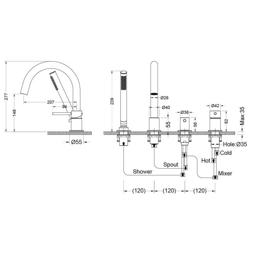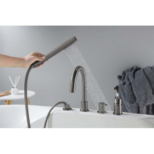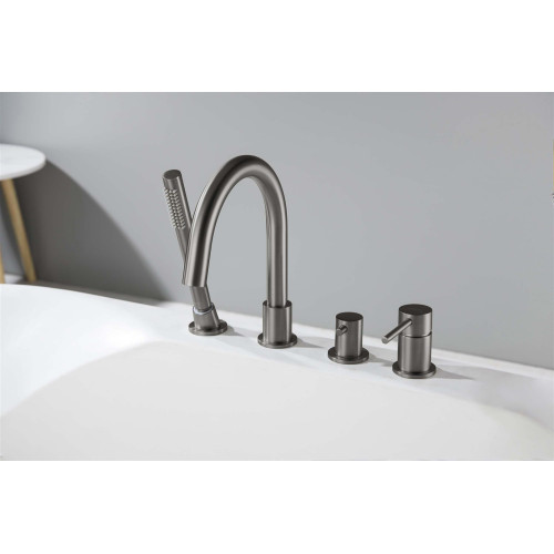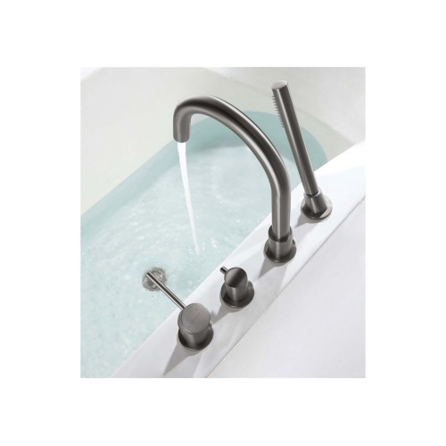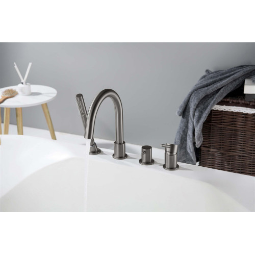 AQ1348BGM ЕВРОПА смеситель на борт ванны на 4 отв., оружейная сталь (шлиф. черный хром) AQ1348BGM
