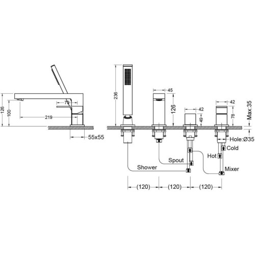 AQ1648CR ЛИБРА смеситель на борт ванны на 4 отв. AQ1648CR