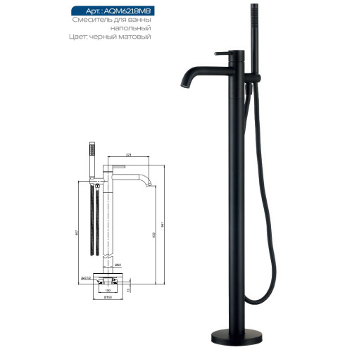 AQM6218MB Siena Смеситель для ванны, напольный (монт. часть в комплекте), черный матовый AQM6218MB