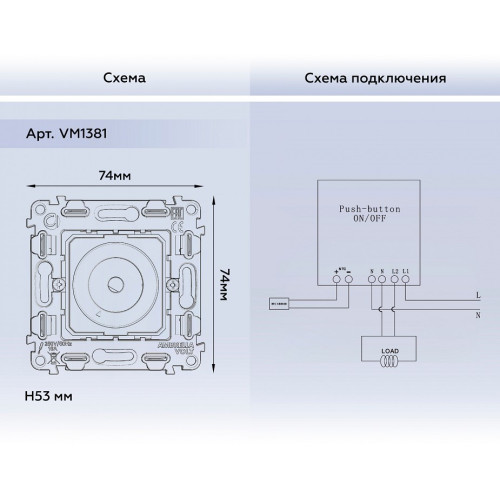 | Способ крепления к поверхности | в стандартном подрозетнике |