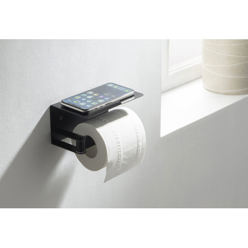 AQ4929MB ЛИБРА бумагодержатель с полкой, матовый черный AQ4929MB