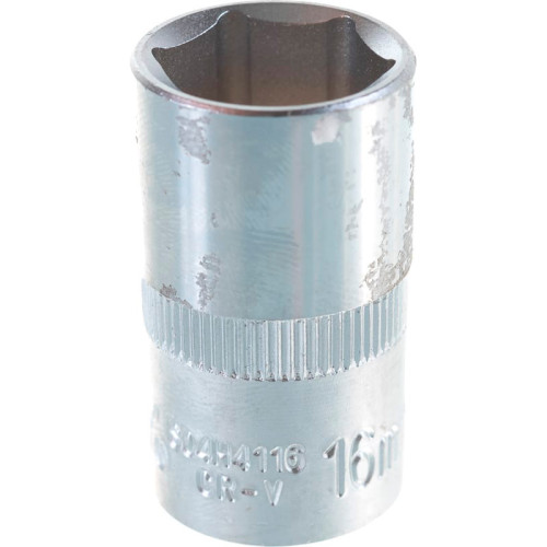 Артикул товара: S04H4116 Штрихкод: 4719152191165 Характеристики товара: диаметр, мм - 16. Тип - Торцевая головка. Страна производства - Тайвань (китай). Набор - Нет. Тип хвостовика - Квадрат. Количество в упаковке, шт - 1. Материал - Сталь CrV. Посадочный размер - 1/2". Тип наконечника - Шестигранный. Габариты упаковки, мм - 22х22х40..
