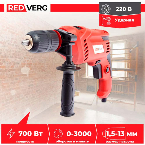 Артикул товара: RD-ID700S Штрихкод: 4630046772683 Характеристики товара: Тип - Сетевой. Мощность, Вт - 700.0000. Страна производства - Китай. Система гашения вибрации - Нет. Наличие реверса - Да. Наличие подсветки - Нет. Регулировка частоты вращения - Да. Тип патрона - Быстрозажимной. Число скоростей - 1. Наличие удара - Да. Регулировка глубины завинчивания - Да..