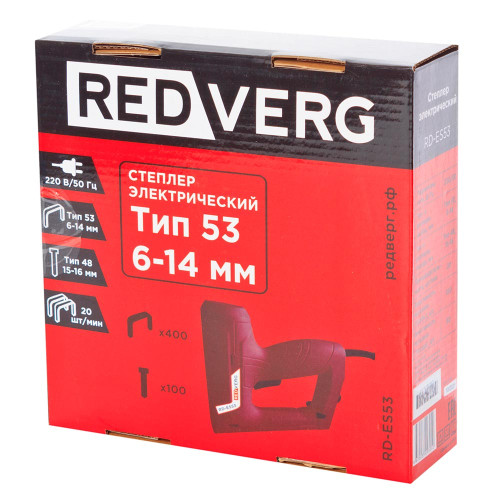 Артикул товара: RD-ES53 Штрихкод: 4670033293050 Характеристики товара: Тип - Сетевой. Мощность, Вт - 800.0000. Страна производства - Китай. Частота ударов, уд/мин - 20.0000. Тип гвоздей - 48. Количество скоб в магазине, шт - 80..