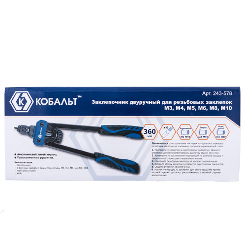 Заклепочник Кобальт 360 мм, двуручный, кейс