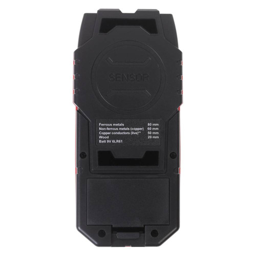 Артикул товара: А00466 Штрихкод: 4620764638712 Характеристики товара: Страна производства - Китай. Тип питания - Батарейки. Глубина обнаружения провода под напряжением, мм - 50.0000. Глубина обнаружения металла (не магнитного), мм - 60.0000..