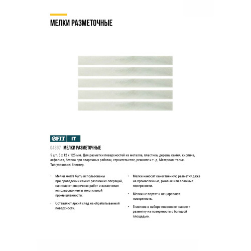 Мелки разметочные ( тальк ), набор 5 шт., 5х10х125 мм