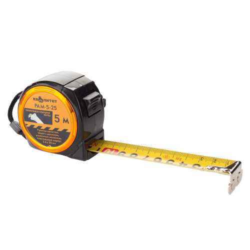 Рулетка Квалитет автостоп, зацеп с магнитом, усиленный механизм, 5 м х 25 мм РАМ-5-25
