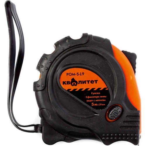 Рулетка Квалитет с 3 фиксаторами, обрезиненный корпус 5 м х 19 мм РОМ-5-19