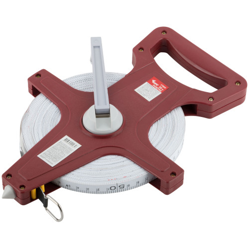 Рулетка землемерная, красный открытый корпус, фибергласовая лента 50 м