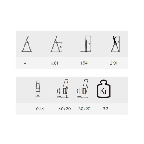Артикул товара: Ам704 Штрихкод: 4607145150858 Характеристики товара: Страна производства - Россия. Материал - Алюминий. Ширина, м - 0.4400. Длина, м - 1.5400. Высота, м - 1.5400. Высота площадки, м - 0.8100. Габариты упаковки, мм - 125х440х1540..