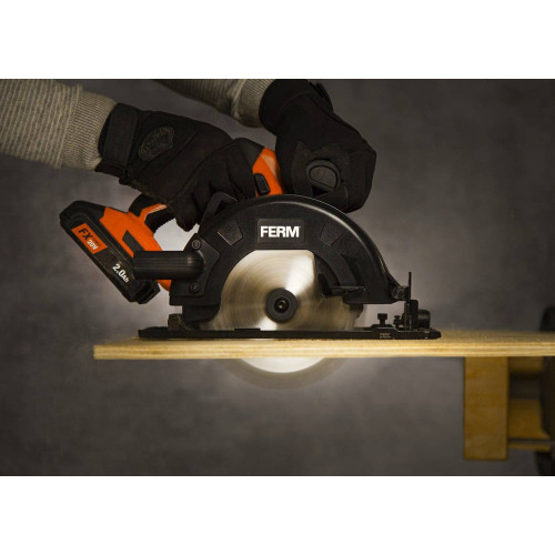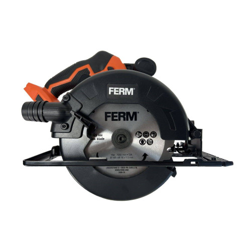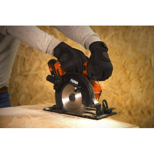 Аккумуляторная беспроводная циркулярная пила FERM CSM 1049 предназначена для выполнения продольных, поперечных, прямых и наклонных распилов дерева. Циркулярная пила обладает достаточной мощностью для качественного распила твердой и мягкой древесины, а так же ДСП и ДВП. Данный электроинструмент отлично подойдет для самостоятельного использования в домашней мастерской. Пила отличается прочной и надежной конструкцией, выполнена из высококачественного пластика, имеет компактный эргономичный дизайн. Инструмент оснащен высококачественным пильным диском ø 165 мм x ø 16 мм x 1,5 мм, 24T. Скорость без нагрузки с максимальным числом оборотов холостого хода 4000 об/мин. При обработке древесины глубину резания и угол наклона полотна можно регулировать: под углом 0° глубина распила составит 45 мм, под углом 45° – 30мм. Пильный диск имеет защитный кожух, обеспечивающий дополнительную безопасность при распиле и защищая пользователя от пыли, опилок и щепы. Замена пильного диска осуществляется с помощью шестигранного ключа, входящего в комплект. Для удобной и безопасной замены диска предусмотрена блокировка шпинделя. Параллельная направляющая обеспечивает точный и ровный результат резки полотна. На инструменте закреплен патрубок для подключения строительного пылесоса, позволяющий сохранить порядок на рабочем месте. Для более безопасной эксплуатации циркулярная пила имеет предохранитель от случайного запуска. Ручки циркулярной пилы оснащены прорезиненными вставками, которые отвечают за плотную фиксацию инструмента в руке. Циркулярная пила работает от аккумуляторной батареи, что позволяет свободно работать в любом удобном для вас месте. Инструмент упакован в картонную коробку. В комплект входит циркулярная пила, пильный диск, параллельная направляющая, шестигранный ключ, патрубок для пылесоса и инструкция. Аккумуляторная батарея и зарядное устройство не входят в комплект и приобретаются отдельно.Беспроводная аккумуляторная циркулярная пилаПильный дискø 165 мм 24Т в комплектеБлокировка шпинделя для удобной замены пильного дискаЗащитный кожух для безопасности оператораПараллельная направляющая в комплектеПредохранитель от случайного запускаРучки с прорезиненными вставками для надежного хватаПатрубок для подключения строительного пылесосаАккумуляторная батарея и зарядное устройство в комплект не входят Характеристики товара:.