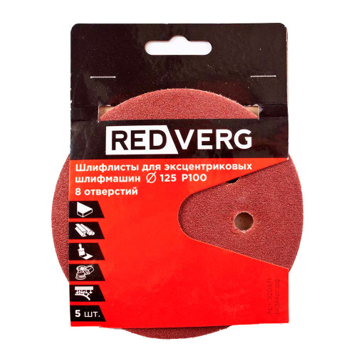 Шлифлист REDVERG для эксцентриковых шлифмашин 8 отверстий 125мм Р100 (5шт)(920471)