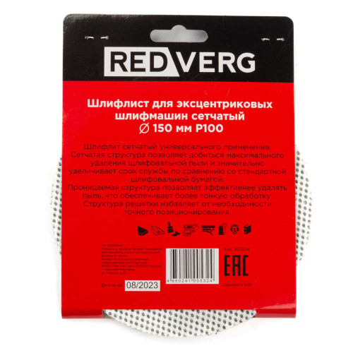 Шлифлист REDVERG для эксцентриковых шлифмашин сетчатый 150мм Р100 (5шт)(921304)