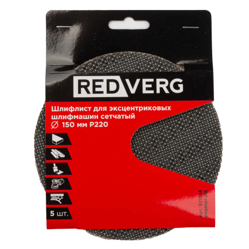 Шлифлист REDVERG для эксцентриковых шлифмашин сетчатый 150мм Р220 (5шт)(921308)