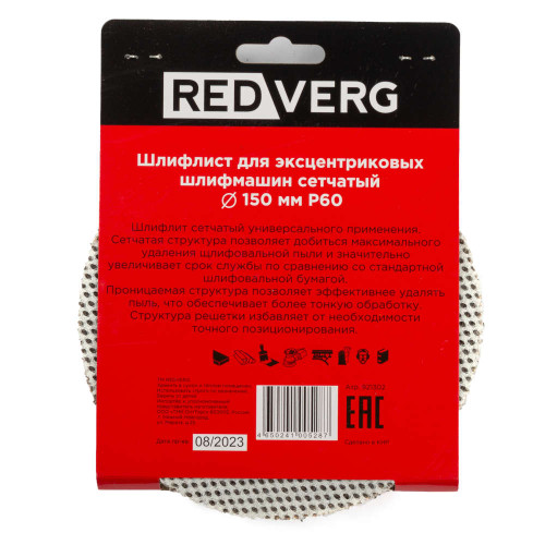 Шлифлист REDVERG для эксцентриковых шлифмашин сетчатый 150мм Р60 (5шт)(921302)