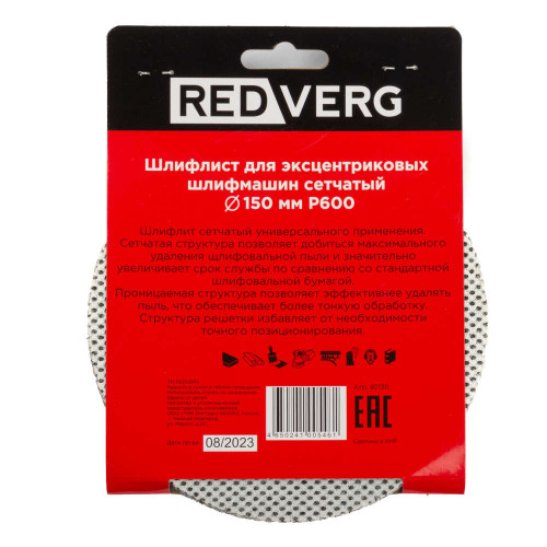 Шлифлист REDVERG для эксцентриковых шлифмашин сетчатый 150мм Р600 (5шт)(921311)