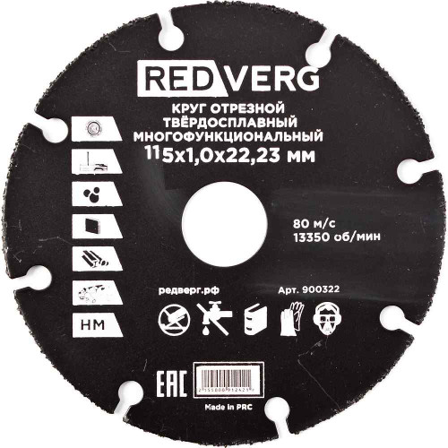 Круг отрезной REDVERG многофункциональный (в тч дерево) 115х22,23х1,0(900322)