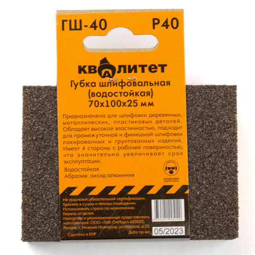 Губка шлифовальная Квалитет 70х100х25мм P40 ГШ-40
